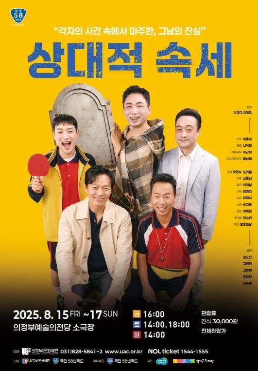 이번 공연에는 연극, 뮤지컬, 드라마 등 다양한 장르에서 안정적인 연기를 선보여 온 성노진, 고영빈, 고병택 등 베테랑 배우들이 출연해 고등학교 시절 친구들로 등장하며 극의 중심을 잡는다. 감초 역할은 장원영 배우가 맡아 극의 균형과 활력을 더하고, 극단 58번국도 소속 신예 이종원 배우가 신선한 에너지로 무대를 채운다. 섬세한 감정선과 탄탄한 호흡을 지닌 출연진들이 모여 완성한 이번 작품은, 인물 간의 서사와 정서의 밀도가 살아 있는 무대로 관객들에게 깊은 몰입감을 선사할 것으로 기대된다.