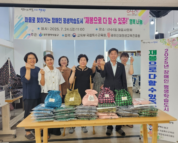 학습자들은 프로그램을 통해 단순한 기술 습득을 넘어 창의성과 협동심을 키우며 자신만의 작품을 완성했다. 제작된 가방은 산수1동 지역 내 여성 장애인들에게 전달돼 실용적이고 의미 있는 선물이 됐다.