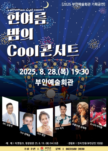 ‘한여름 밤의 Cool콘서트’는 부안예술회관 기획공연으로 8월의 마지막 무더운 여름을 시원하고 신나게 보내자는 취지로 준비한 콘서트다.