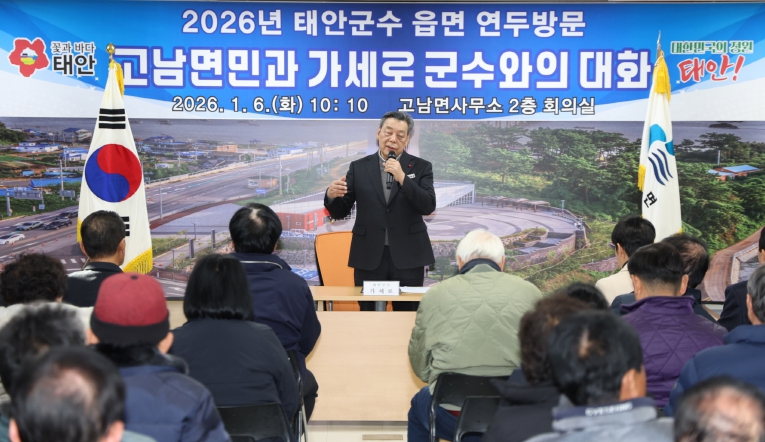 군에 따르면, 가 군수는 지난 6일 고남면 방문을 시작으로 △7일 안면읍, 근흥면 △8일 남면 △12일 원북면, 이원면 △13일 태안읍 △15일 소원면에서 ‘2026년 읍·면 연두방문’을 실시한다.