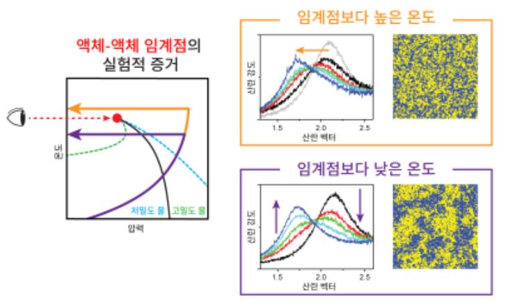 과학자들은 이에 대한 해답 중 하나로 ‘액체-액체 임계점’ 가설을 제시했다. 이 가설은 물이 고밀도 물과 저밀도 물이라는 두 종류의 액체상으로 공존하며, 특정 온도(임계점)에 도달하면 그 구분이 사라져 우리가 일상에서 보는 물이 된다는 가정이다.