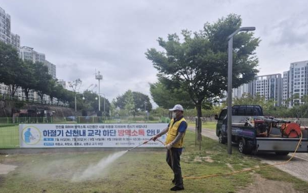 고온다습한 기후로 위생해충의 개체수 증가로 인한 관내 주민들의 불편을 해소하기 위해 지난 6월 신천 내 교각 하단 4개소(대봉교, 희망교, 중동교, 상동교) 일원에 대한 방역소독을 실시했고, 7월에서 8월까지 대구 공공시설관리공단과 협업하여 방역 일정 등을 사전에 홍보하여 신천을 이용하는 시민들의 불편을 최소화하며 월 2회 정기 방역을 실시할 예정이다.