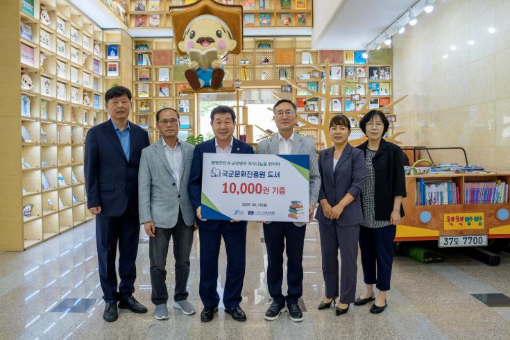 이재영 증평군수는 “매년 꾸준한 도서 기증으로 지식 나눔과 문화 확산에 앞장서 주신 국군문화진흥원에 깊이 감사드린다”며 “군민과 장병이 함께하는 독서문화 도시로 자리매김할 수 있도록 기증 도서를 적극 활용하겠다”고 말했다.