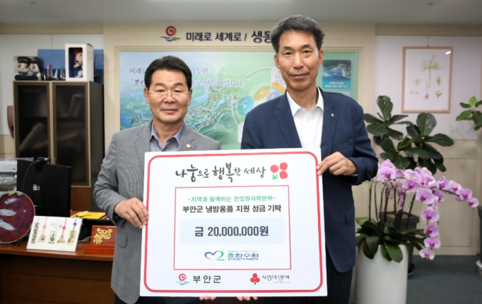 이 날 기탁된 성금은 동진면, 계화면, 보안면, 변산면, 진서면, 줄포면 일대 경로당 10개소의 노후된 에어컨 교체 지원을 위해 쓰여 질 예정이며, 기탁식에는 권익현 군수를 비롯해 김성면 한빛원자력본부장이 직접 참석해 나눔의 의미를 더했다.