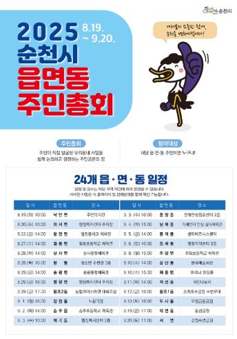 자세한 일정은 순천시청 누리집에서 확인하거나, 읍면동 주민자치센터로 문의하면 된다.