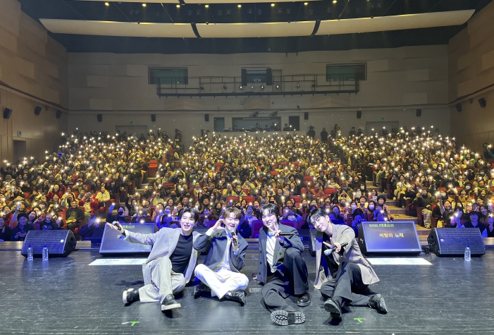 국내외에서 큰 인기를 누리고 있는 크로스오버 남성 사중창단 ‘포레스텔라’의 이번 영덕 콘서트는 예매 시작과 동시에 전석이 매진되며 지역민들의 높은 기대를 증명했다. 공연 당일에도 이른 시각부터 관객들이 모이기 시작했고 노쇼 없이 대극장 688석을 가득 채우며 뜨거운 열기를 뿜어냈다.