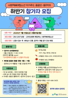 선정된 청소년에게는 활동 계획에 따라 1인당 60만 원에서 최대 100만 원까지 활동비가 지원된다. 올 상반기에도 1차 모집을 통해 13명의 청소년이 선발되어 개별 프로젝트를 수행 중이다.