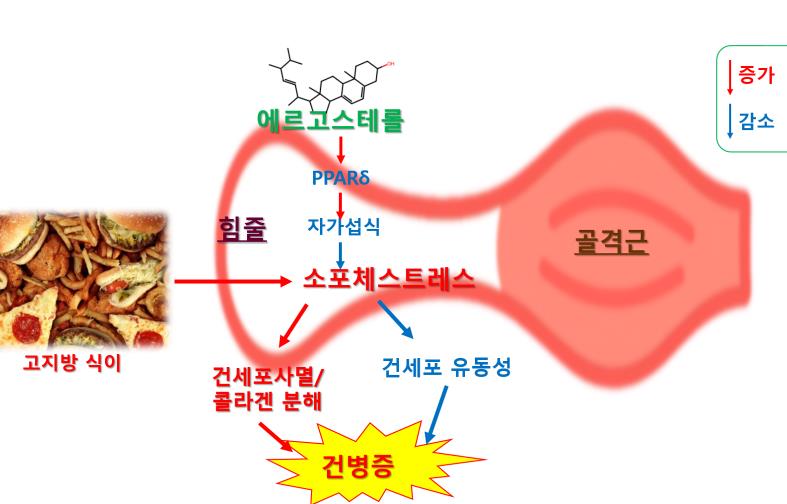 에르고스테롤은 힘줄 세포의 사멸과 기능 저하를 억제하고 소포체 스트레스와 근육-힘줄 간 신호 전달을 조절해 건병증 치료 가능성을 제시했다. 이번 연구 결과는 국제학술지 'Mycobiology'에 게재됐다.
