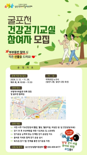 3월부터는 걷기 실천을 생활화할 수 있도록 ‘걷기 교실’과 ‘자율 걷기 동아리’도 운영할 예정이며, 해당 프로그램의 참여자를 모집 중이다.
