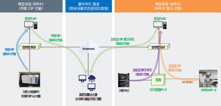 이번에 구축이 완료된 매일유업 평택공장(집유장)의 경우 농식품부에서 추진중인 ‘집유장 스마트 해썹 현장구축 사업’을 통해 추가적인 시스템을 도입한 대표 사례이며, 차량·사일로에 대한 청소 공정 모니터링 센서, 우유 저장 탱크 온도 데이터 연동, 우유 수집 전 검사 정보 연결 기능 등을 현장에 직접 구축함으로써 스마트해썹 기반의 위생 관리가 실제로 구현된 첫 번째 집유장 사례로 자리매김하고 있다.