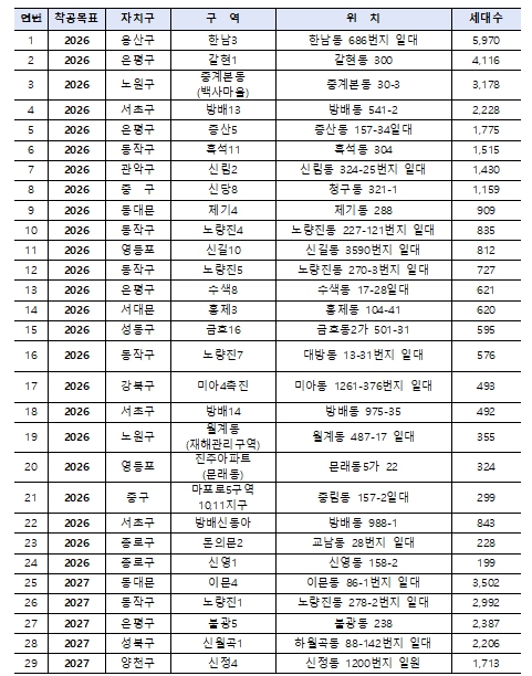 서울시는 지난해 6.27·10.15 부동산 대책 등 규제 기조 속에서 민간 정비사업의 위축 가능성을 진단하고, 공급 가뭄 해소를 위해 향후 3년간 총 8만 5천 호 규모의 ‘핵심공급 전략사업’을 가동해 조기 착공에 박차를 가한다.