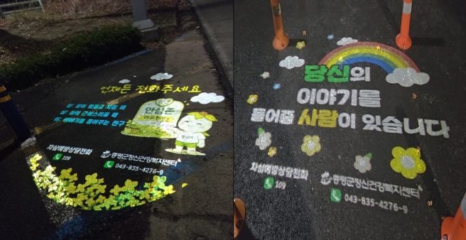 이에 센터는 보강천 하상 주차장과 연암 생태공원에 생명 존중 메시지와 로고젝터를 설치했다.