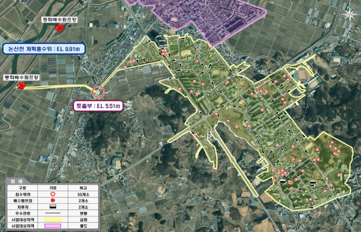 이번에 선정된 내동 일원(내동·강산·취암·부창)은 저지대 지형과 노후 하수관로로 인한 통수 능력 부족으로 최근 10년 간 반복적인 침수 피해가 발생해왔으며, 2024년에는 인명피해가 발생하는 등 상습 침수 문제 해결이 시급한 지역이다.