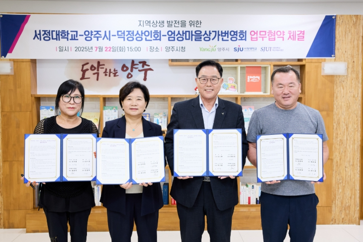 강수현 양주시장은 “이번 협약을 계기로 양주시, 서정대, 지역상인회가 서로 상생할 수 있는 각종 사업을 발굴 및 추진하여 민·관·학 동반 성장의 기틀을 만들어 나갈 것”이라는 뜻을 밝혔다.