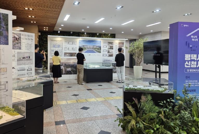 또한 전시에는 평택시 신청사 및 행정복지센터 설계 모형, 조감도 및 건축 개요, 특화계획, 공간 활용안을 포함한 평면도 패널, 그리고 평택 신청사와 가칭)서부출장소의 홍보 동영상이 함께 마련돼 시민들에게 다양한 방식으로 미래 청사의 모습을 보여주고 있다.