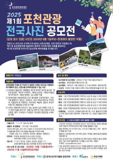 이중효 포천문화관광재단 대표이사는 “사진 공모전으로 포천의 매력을 다양한 시선으로 담아낼 수 있기를 기대한다”면서, “포천의 가치와 아름다움을 공유하는 기회가 되기를 바란다”고 전했다.