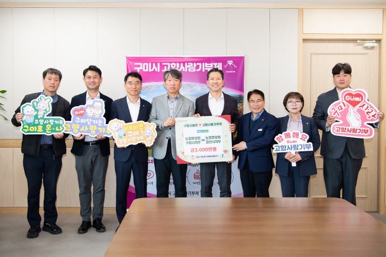 이날 기탁식에는 김장호 구미시장을 비롯해 이승철 농협중앙회 구미시지부장, 이재근 농협중앙회 경산시지부장, 김택동 동구미농협 조합장, 여창훈 구미시지부 농정지원단장, 심규봉 경산시지부 농정지원단장과 양 농협 임직원 등 10여 명이 참석해 고향사랑기부제의 취지와 성과를 공유했다.