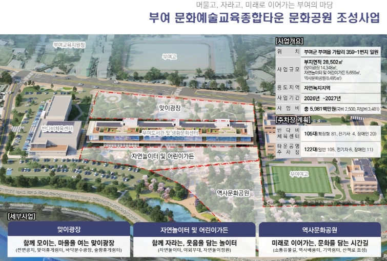먼저, 일반 유형에 선정된 부여군은 2025년부터 2027년까지 60억원을 투입해 ‘문화예술교육종합타운 문화공원’을 조성한다.