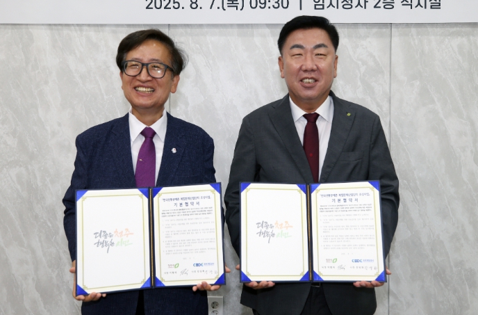 임시청사 직지실에서 열린 협약식에는 이범석 청주시장, 진상화 충북개발공사 사장 등이 참석했다.