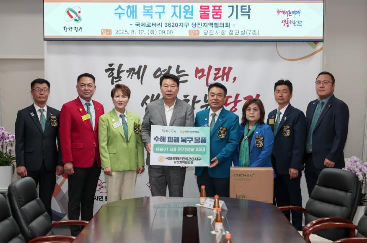 한편 국제로타리 3620지구 당진지역협의회는 지난 7월 25일에 수해 피해 복구 작업을 위해 장화 200켤레를 기부한 바 있다.