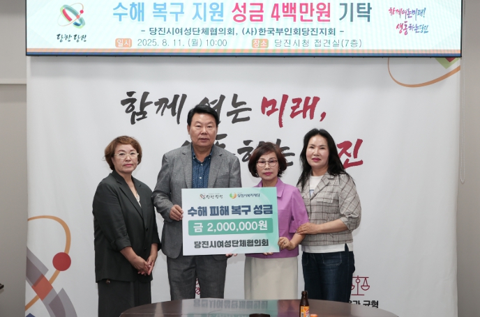 이번 성금은 집중호우로 피해를 본 이웃들의 조속한 생활 안정과 피해 복구를 돕기 위해 마련됐으며, 여성단체협의회와 한국부인회당진지회는 각각 200만 원씩을 기탁했다.