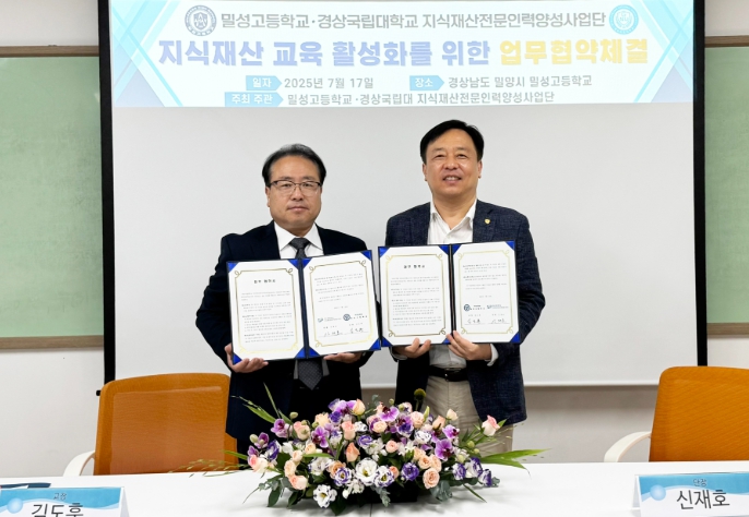 양 기관은 밀성고등학교에 대한 지식재산 교육 지원 및 지식재산 전문인력 양성 등을 위해 ▲밀성고 학생들의 발명 인재 양성 및 지식재산 교육 관련 협력 ▲지역 발전을 위한 지식재산권 전문인력 양성 및 교육 지원 등에 적극 협력할 예정이다.