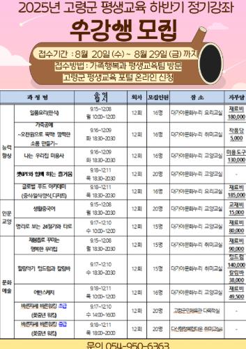 보다 자세한 사항은 고령군 평생교육포털 공지사항에서 확인할 수 있다.
