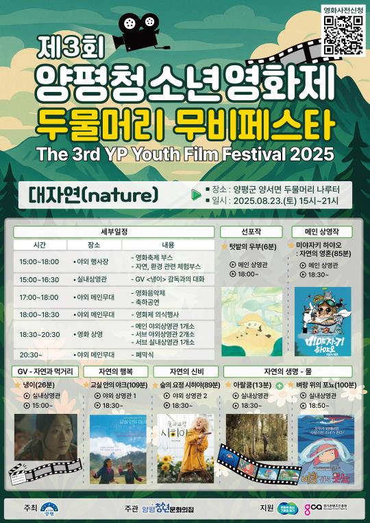 양평청소년문화의집 관계자는 “이번 영화제는 두물머리 대자연 속에서 영화, 음악, 체험을 함께 즐길 수 있는 축제”라며 “지역주민과 청소년, 관광객 모두가 여름의 끝자락을 특별하게 보낼 수 있기를 바란다”고 전했다.