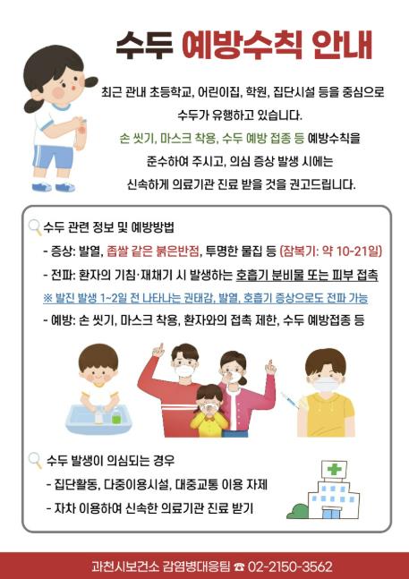 이에 따라 과천시 보건소는 수두 환자 발생 시 역학조사를 실시하는 한편, 어린이집과 학교, 학원 등을 대상으로 예방수칙 준수 안내 등 선제적인 관리 조치를 시행하고 있다.
