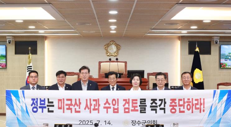 또한, 장수군의회 의원 일동은 “장수군의회는 지역 농민들과 뜻을 함께하며, 미국산 사과 수입 검토 철회를 위한 목소리를 결집하는 데 앞장설 것”이라며, “정부는 더 이상 농민을 통상협상의 희생양으로 삼지 말고, 농업의 공익적 가치를 인정하며 농민의 생존권을 보장해야 한다”고 촉구했다.