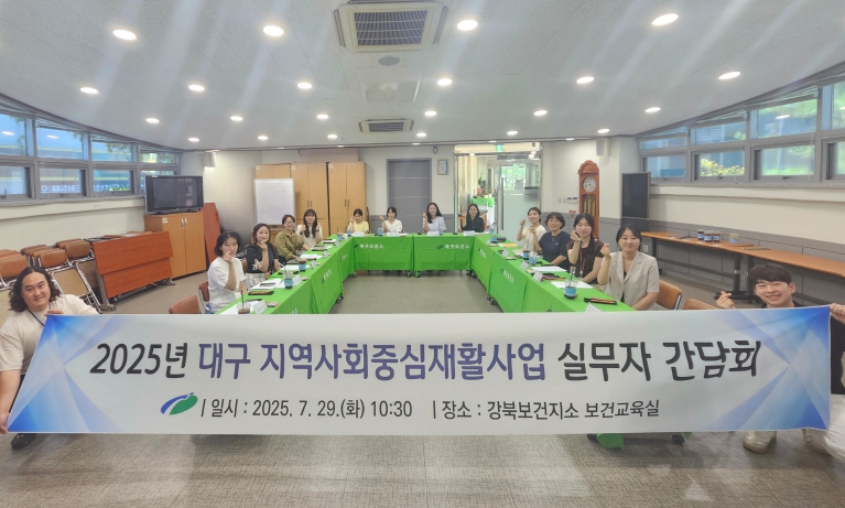 이번 간담회는 2025년 장애인 건강보건관리사업의 멘토링 제도 시행에 따라, 대구 북구보건소가 주관하여, 대구지역 9개 구·군 재활사업 실무자와 유관기관(지역장애인보건의료센터, 경북대병원 공공의료연계팀)이 함께 모여 사업현황을 공유하고 협력 네트워크를 구축하고자 마련됐다.