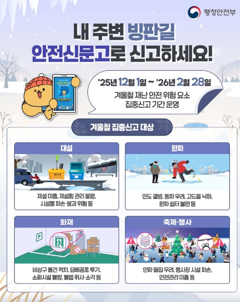 겨울철 재난 안전 위험 요소 집중신고 기간 운영
