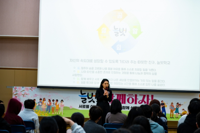 늘벗마중주간은 새로운 환경에 대한 부담을 줄이고 학생들이 학교 공동체에 자연스럽게 적응할 수 있도록 돕기 위한 교육과정으로, ▲학교생활 이해를 위한 오리엔테이션, 학생-학생 ▲학생-교사 간 관계 형성 ▲교육과정 소개와 학교의 교육 방향 안내 등을 통해 서로를 이해하고 소통하는 시간을 마련했다.