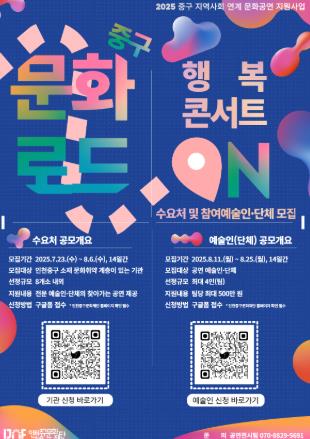이번 '문화로드 중구 : 행복콘서트 온(ON)'은 주민 누구나 일상에서 문화를 향유할 수 있도록 하고자 인천중구문화재단이 올해 처음 시도하는 문화 복지형 공연 사업이다.