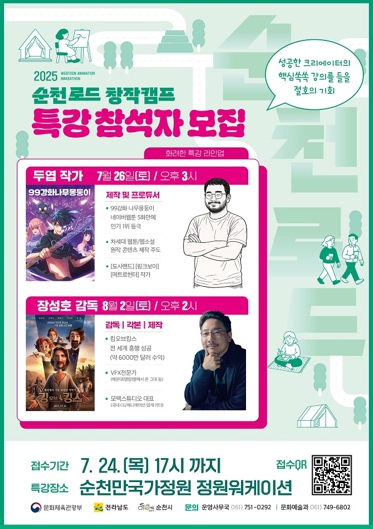 노관규 순천시장은 “순천은 정원이라는 아날로그에 콘텐츠라는 상상력을 더해 창작의 도시로 도약하고 있다”며 “창작캠프를 통해 순천의 자원을 활용하여 우수 IP를 발굴하고 전국 청년 창작자들의 연결을 확장해 나가겠다”고 전했다.