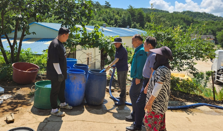 특히, 7월 11일부터 읍·면별로 살수차 6대 및 산불진화차량 6대 등을 살수 관련장비 12대를 집중 배치하여 긴급을 요하는 농가에 대하여 밭작물 살수작업 중이며, 필요시 벼 출수기 논가뭄이 예상되는 마을에 살수차를 투입하여 7월중순 이후 예상되는 벼농사 피해를 최소화하고자 한다.
