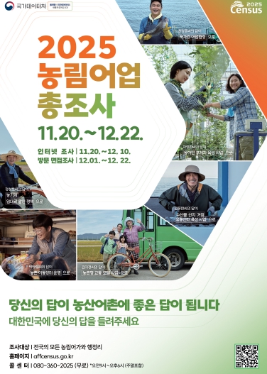 국가승인통계인 농림어업총조사는 전국의 ▲농가·임가·어가의 구조 ▲경영실태 ▲농림어업 생산 기반 등을 파악해, 향후 지역 농림어업 정책과 지원사업의 근거 자료로 활용하고자 진행된다.