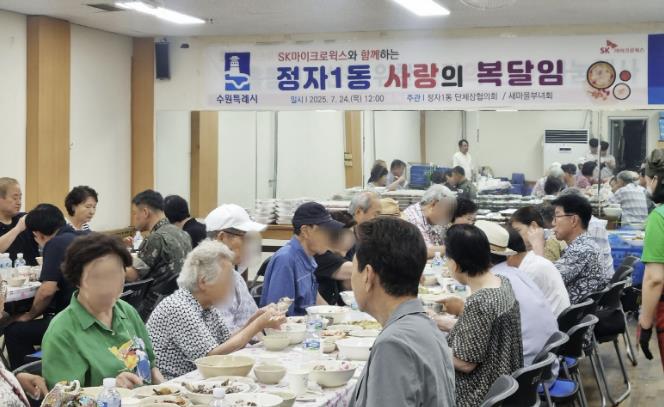 이명구 정자1동장은 “항상 어려운 이웃에 관심을 가지고 도와주시는 새마을부녀회와 SK마이크로웍스에 진심으로 감사드린다”며, “사랑과 정성을 가득 담은 보양식 드시고 건강한 여름 보내시길 기원한다”고 전했다.
