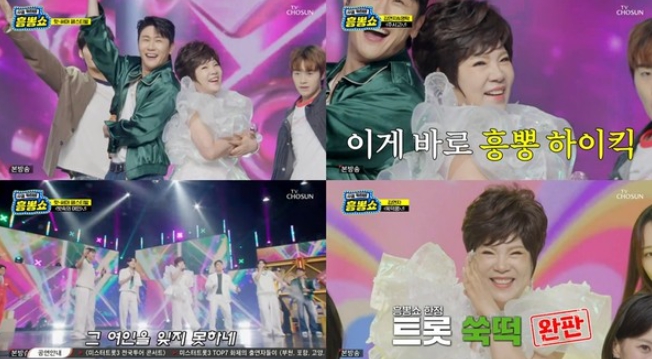 또 김연자는 영탁과 남다른 호흡을 자랑하며 훈훈한 선후배의 케미스트리를 뽐냈다. 김연자의 등장에 MC들은 "이렇게 나타날 줄 몰랐다"며 흥분한 모습을 보였다.