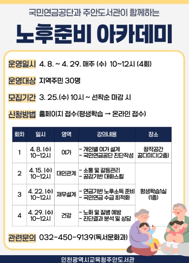 프로그램은 4월 8일부터 29일까지 매주 수요일에 운영되며, 참여 신청은 3월 25일 오전 10시부터 주안도서관 누리집에서 선착순으로 진행된다.