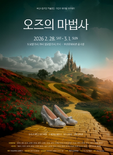 부산시립극단이 2026년 특별공연으로 어린이 뮤지컬 아카데미 작품 '오즈의 마법사'를 선보인다. 이번 공연은 2월 28일부터 3월 1일까지 부산문화회관 중극장에서 개최되며, 토요일 15시·19시, 일요일 13시·17시 총 4회 공연으로 관객과 만난다.