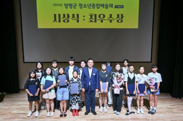시상식에서는 지난 7월 9일 열린 ‘2025 양평군 청소년종합예술제’에서 음악, 무용, 사물놀이, 문예, 대중문화 등 5개 부문 14개 종목에 참가한 465명의 청소년 가운데 최우수상, 우수상, 장려상을 수상한 청소년들이 무대 위에서 한 명씩 상을 받으며 축하와 박수를 받았다.