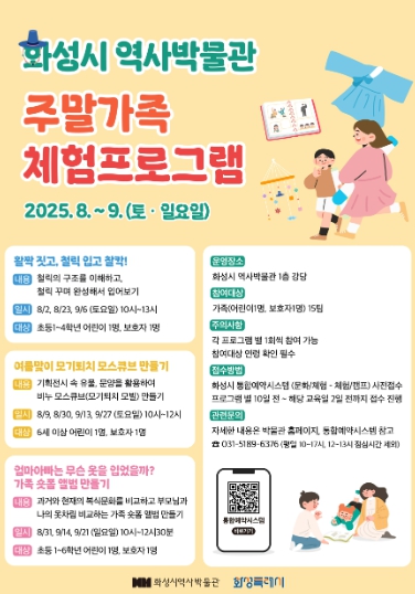 정상훈 문화유산과장은 “이번 주말 프로그램은 기획 전시와 연계해, 전통 의복과 여름을 테마로 알차게 구성했다”며 “무더운 여름 화성시역사박물관에서 재미있고 알찬 공예·미디어 체험을 즐겨보시길 바란다”고 말했다.