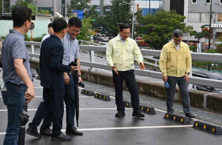 이번 점검은 재난관리책임기관장인 구청장 주관으로 진행됐으며, 공영주차장 옹벽의 구조적 안전성과 주차장 이용자 안전 등을 최우선으로 검토하며 점검했다.