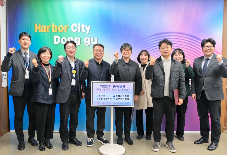 김현우 동구청 경제복지국장은 “이번 협약은 병원과 지역사회를 잇는 든든한 복지 울타리를 만드는 중요한 첫걸음”이라며, “의료와 돌봄이 하나로 이어지는 시스템을 통해 단 한 분도 소외되는 구민 없이 누구나 살던 곳에서 품격 있는 노후를 누릴 수 있도록 행정력을 집중하겠다”고 말했다.