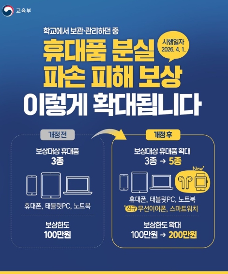 시티트리뷴 - 교육부, 학교에서 보관·관리 휴대품, 분실·파손 피해 보상 확대