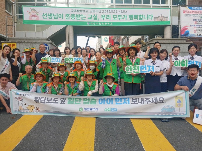 이번 캠페인은 어린이 안전을 최우선으로 생각하는 안전문화를 확산하기 위해 마련된 것으로 대전서부교육지원청, 대전지방경찰청, 녹색어머니회, 모범운전자연합회, 대전서원초등학교 교직원 등 유관기관이 함께 참여했다.
