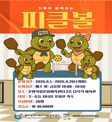 이번 프로그램은 공공시설 이용 활성화와 공동체 문화 정착을 위해 마련됐으며, 북구시설관리공단은 앞으로도 모든 세대가 함께 즐길 수 있는 다양한 생활체육 프로그램을 지속적으로 운영할 계획이다.