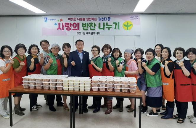 권선1동 사랑의 반찬나눔은 매월 새마을부녀회 회원들의 자발적인 참여로 실시하고 있으며, 이번 달에는 정성스럽게 만든 △제육볶음 △계란말이 △배추김치 3종 밑반찬을 만들어 총 36세대에 전달했다.