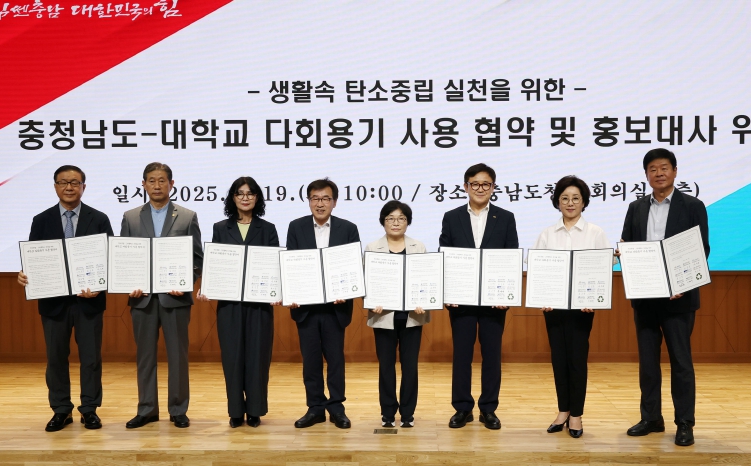 정부 계획보다 5년을 앞당긴 2045 탄소중립 실현과 1회용품 감축을 목표로 마련한 이번 협약에는 △국립공주대 △남서울대 △세한대 △순천향대 △연암대 △청운대 △혜전대가 동참했다.